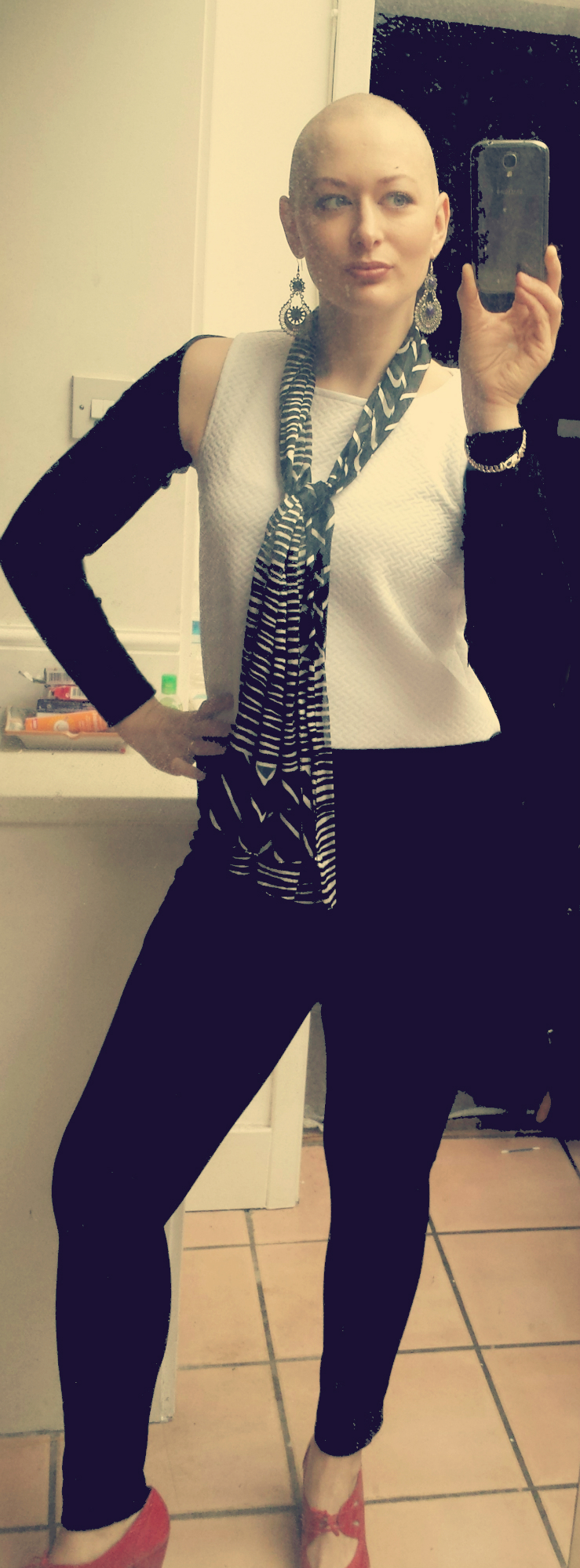 It’s the second day with my shaved head and I’m starting to have more fun with clothes. Every day has become a “Dress Your Head” day!