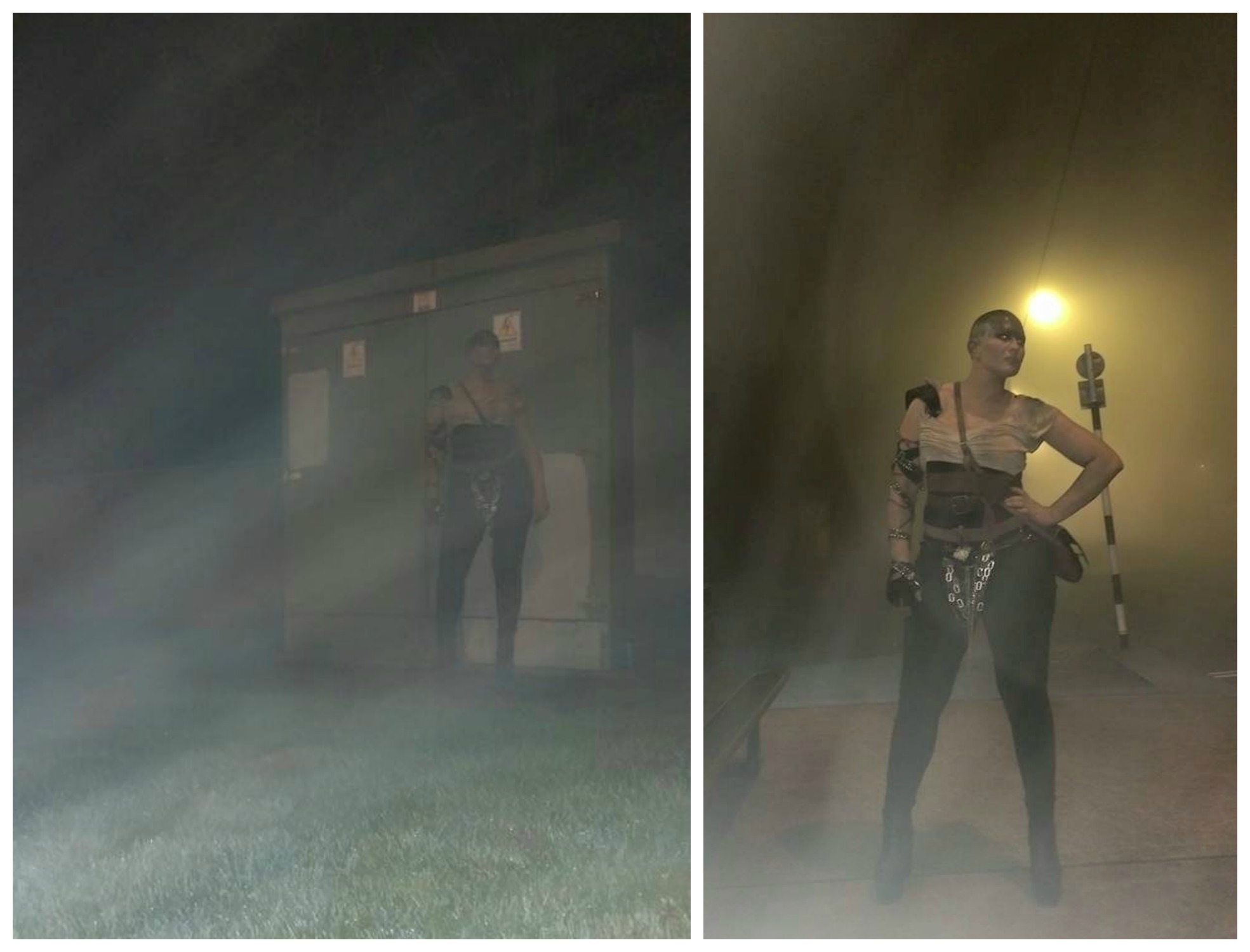 As the fog creeped along the streets smoldering every lamp post in sight, a high voltage box was the perfect backdrop for Furiosa’s moody shots.