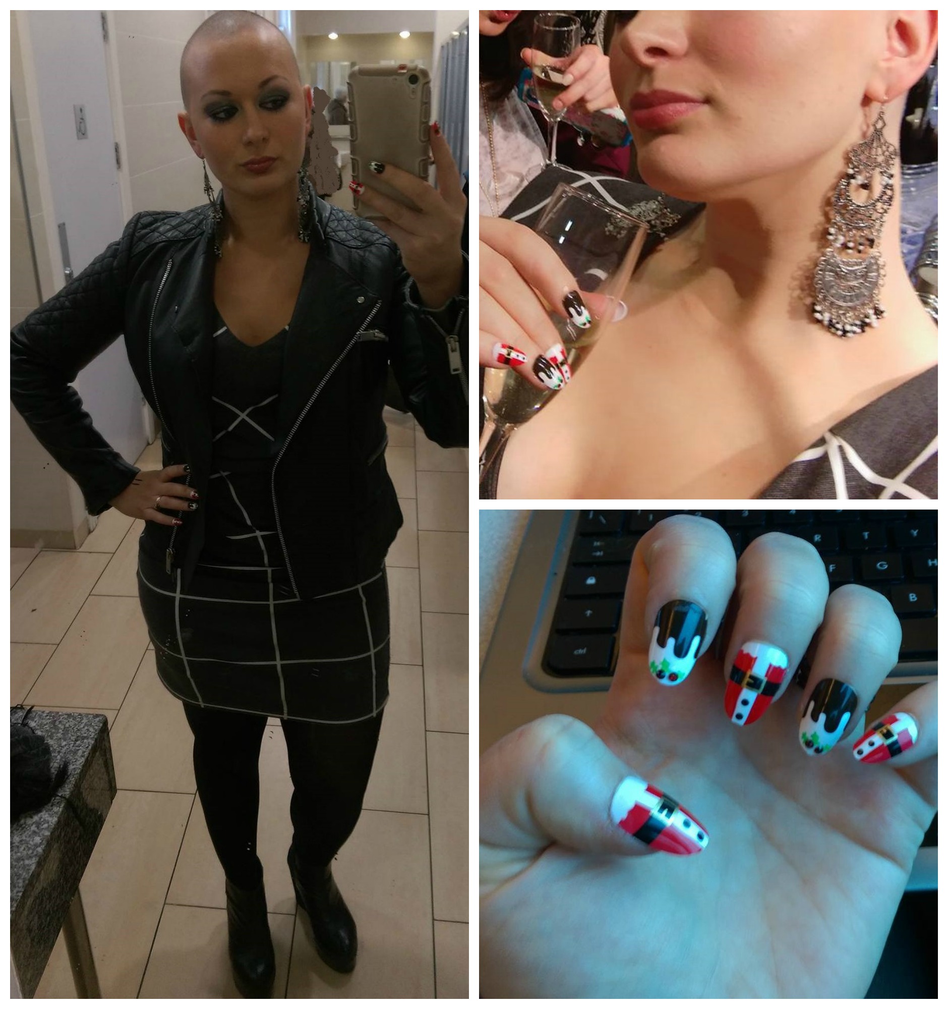 I wintered up my TK Max dress with black tights, platform boots, biker jacket and big dangly earrings. To make my boots look like new again and nice and shiny, I rubbed Vaseline into them. Move over shoe polish!