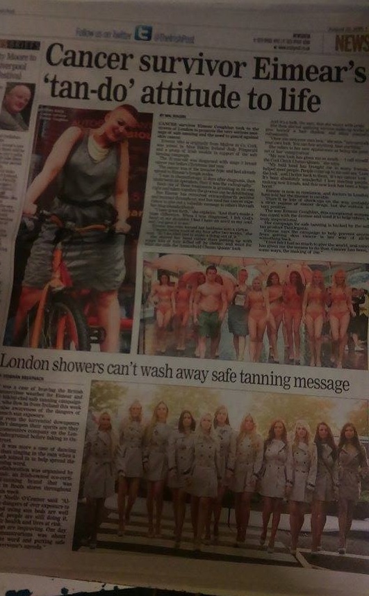 Irish Post.co.uk “Inspirational Irish cancer survivor brings her safe tanning message to London in style”